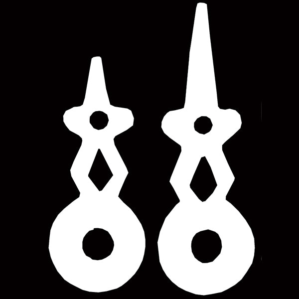 Miniature Cuckoo Hand 4 cm a pair of white celluloid hands consisting of 1 minute hand and 1 hour hand. These Hands are best suited for dials that have a diameter 4 cm.