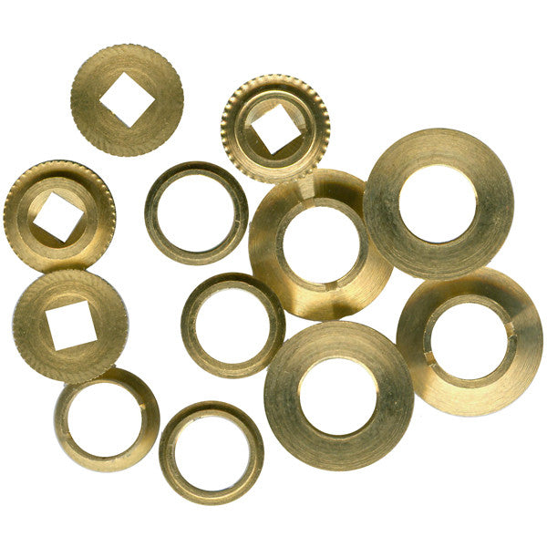 Brass Minute & Hour Bushing Asst. is an assortment of 12 brass minute and hour hand bushings, specifically for mechanical and quartz movements.
