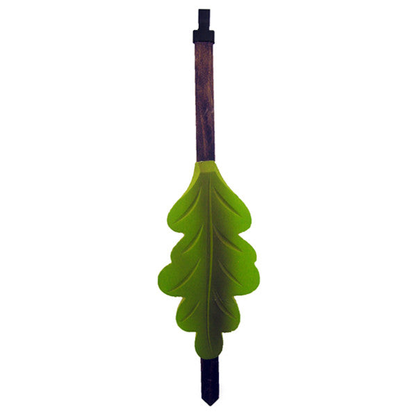 Green 8 Day Oak Leaf Pendulum is a green and yellow 8 day oak leaf cuckoo clock pendulum measuring 22 cm in length and 5 cm in width.
