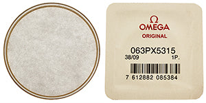 29.62 mm x 3.80 mm (height) round plastic crystal, with gold colour ring, genuine 063PX5315 Omega® crystal, fits Omega® case REF 1660257, 1660258, 1660260, 3660863