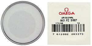 31.94 mm x 4.95 mm (height) round plastic crystal with steel colour ring, genuine 063PZ5087 Omega® crystal, fits Omega® case REF 10683783, 10687145, 1321004, 135019, 135019SP, 1360019, 136019SP, 1369020, 1650033, 1660033, 1663033, 1663035, 3667002, 7223,