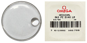 29.62 mm x 4.00 mm (height) round plastic crystal, steel colour ring with round calendar loupe, genuine 063PZ5140LR Omega® crystal, fits Omega® case REF 101442, 101476, 11088374, 135005, 1360005, 136005, 136010, 14324, 14328, 14350, 14355, 14363, 14365, 1