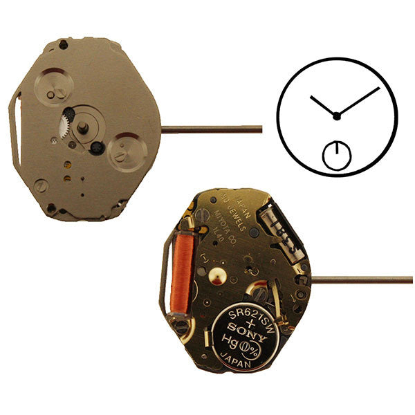 1L40 Miyota Quartz Watch Movement is a 3 hand movement (hour / minute /small seconds) with no date. This ladies movement is a 6 3/4 ligne x 8 ligne movement, dimensions are 15.30 mm x 18.20 mm with a thickness of 2.93 mm, overall height 4.53 mm. Hand dimensions are 120/70/17 (h/m/s). 0 jewel movement, uses 364 battery. The distance between the hour/minute hands and the seconds bit is 5.00 mm (center to center). Stem use part number 065-477 (tap 0.90 mm / tap 10).