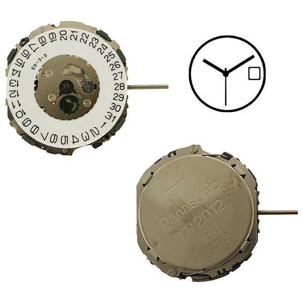 2S60 Miyota Quartz Watch Movement is a 3 hand movement (hour / minute / seconds) with date @ 3 o'clock position, 10 year battery life. This gents movement is a 10 1/2 ligne movement, dimensions are 20.00 mm x 21.50 mm with a thickness of 3.99 mm. Hand dimensions are 120/70/17 (h/m/s). 0 jewel movement, uses CR2012 battery.