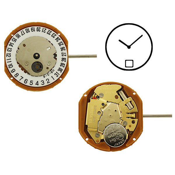 GN15 Date 6 Miyota Quartz Watch Movement is a 2 hand movement (hour/minute) with date @ the 3 o'clock position. Movement is a 8 3/4 ligne movement, 20.00 mm x 18.00 mm with a thickness of 2.71 mm, overall height 3.89 mm. Hand dimensions are 120/70 (h/m/s). 0 jewels, uses 364 battery. Use stem part number 065-547 (tap 0.90 mm / tap 10).