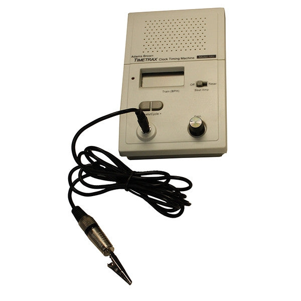 Timetrax 185 Clock Timer this electric clock timer and amplifier measures the rate of mechanical clocks by sensing escapement action and mechanical sounds of the escapement. Use on carragiage clocks to 400 day and Atmos clocks. It reads vibrations per hour. Timetrax also features a digital balance mode that helps place a clock in beat and has a built in audio beat amplifier. *Batteries not included. Specifications are as follows: