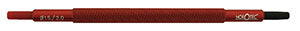 Tool for fitting hands with delrin ends. Knurled hand in anodised aluminium. One end has a hole diameter 0150 mm, and the opposite end has a hole diameter of 2.00 mm