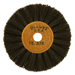 Wood Hub Wheel Brush, 2 Rows, Converging, Overall diameter 1 7/8" Wood Hub Wheel Brush, 2 Rows, Converging, Overall diameter 1 7/8" consists of Chungking bristles mounted into a hardwood hub with 1/4" arbor holes to fit tapered spindles of polishing motors. Wooden Hub diameter is 7/8", Trim length is 1/2". Bristle tufts are "staple-set" into wood hubs to remain securely fastened.