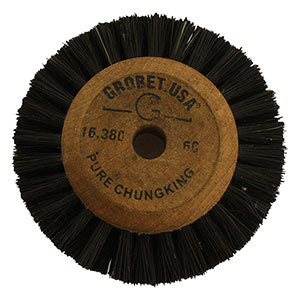 Wood Hub Wheel Brush, 2 Rows, Converging, Tapered Hole, Overall diameter 2"Wood Hub Wheel Brush Style 6C, 2 Rows, Converging, Overall diameter 2" consists of Chungking bristles mounted into a hardwood hub with 1/4" arbor hole tapered to fit tapered spindles of polishing motors. Wooden Hub diameter is 1 1/4", Trim length is 3/8". Bristle tufts are "staple-set" into wood hubs to remain securely fastened.