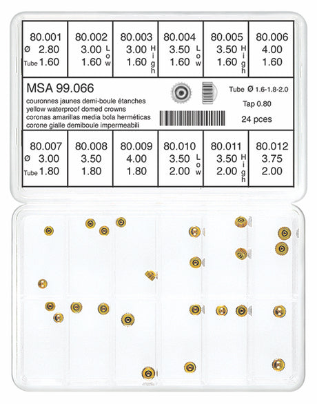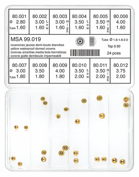 Water-Proof Domed Yellow Crown Assortment Tap 90 (24 Crowns, 12 models)