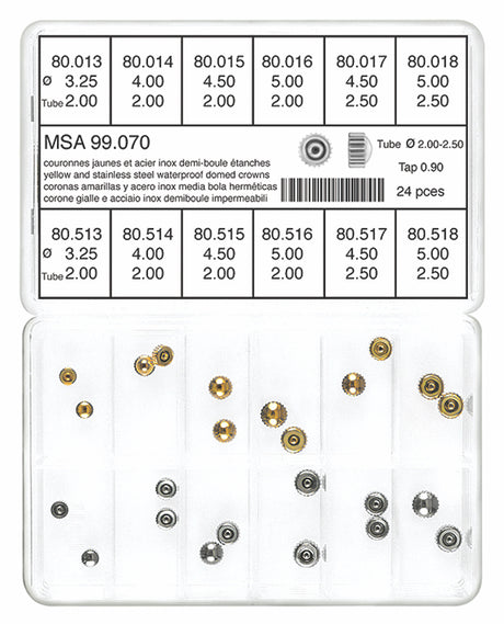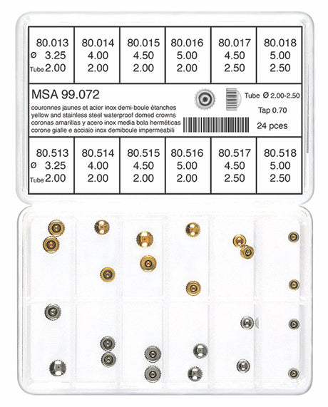 Water-Proof Domed Crown Assortment Tap 90 (24 Crowns, 12 models)