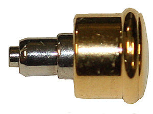 Gold colour pusher, genuine, Mushroom shaped cap, widest diameter is 4.50 mm, smaller diameter is 4.00 mm, fits friction into the case 1.80mm, total length 6.60mm. Fits Tissot® case numbers: J178, J278. Tissot® part number T360.009 or T360007150