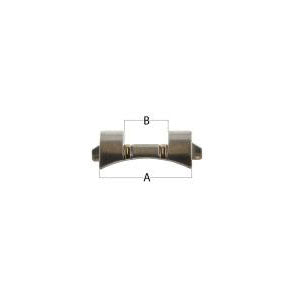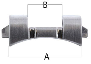 13 mm Curved End Piece with Pointed Tips are available in two-tone, steel and yellow. The width of the case (A) measures 13 mm and the width of the cute (B) measures 6 mm.