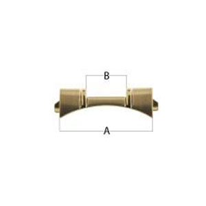 19 mm Curved End Piece with Pointed Tips are available in steel. two toned, and yellow. The width of the case (A) measures 19 mm and cut (B) is available in 7 mm and 8 mm.