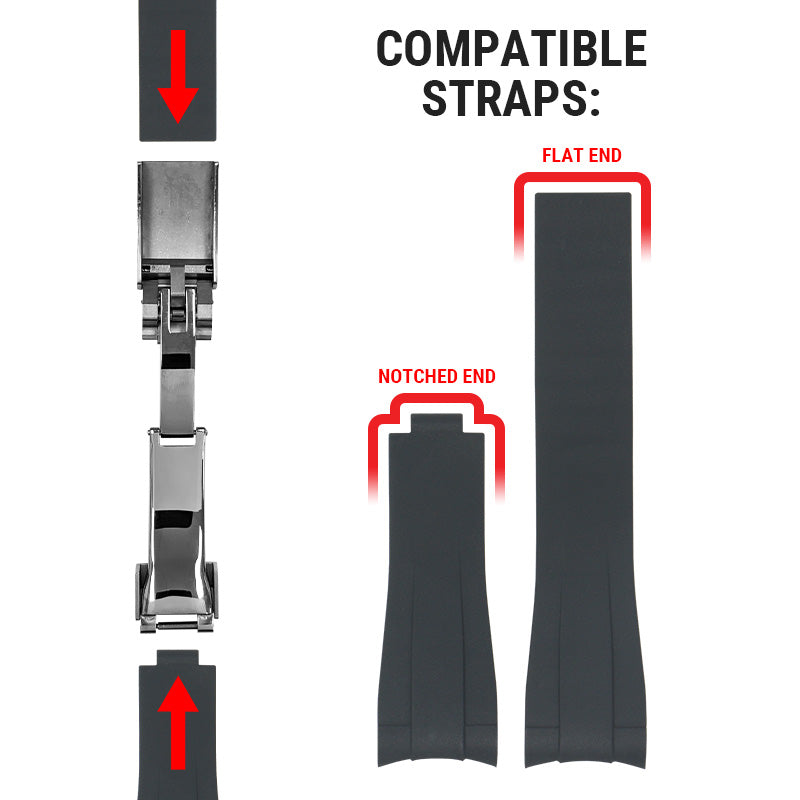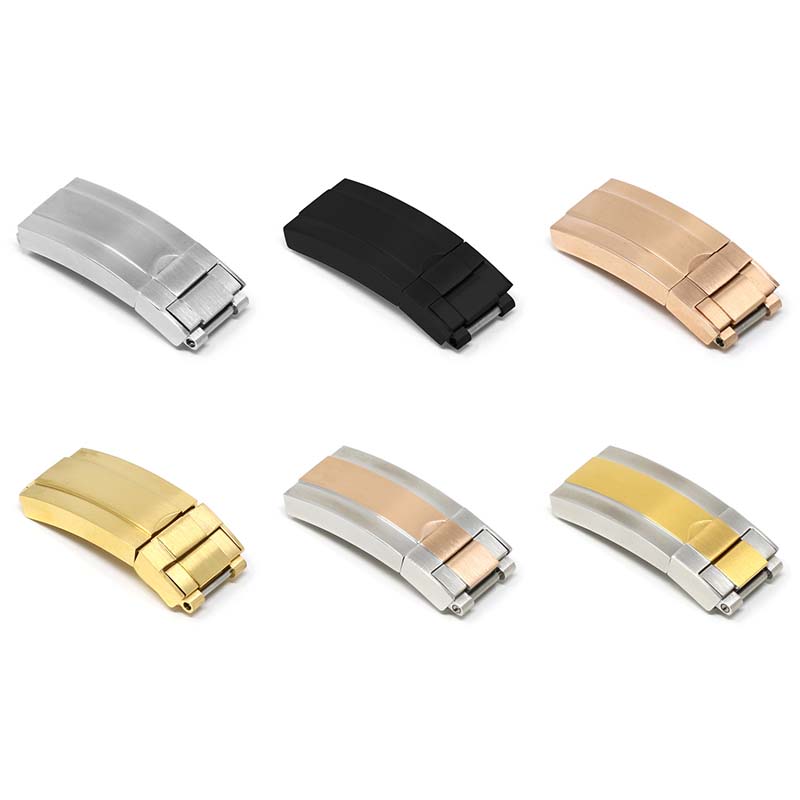 Premium quality stainless steel deployment clasp. The single notch design fits select watch straps with compatible clasp ends.