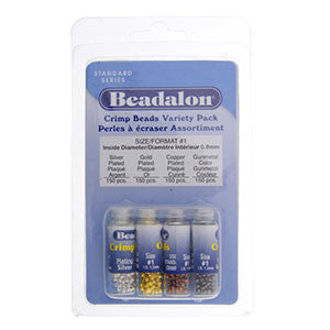 Crimp Beadalon Assortment 1- pkg 600 is an assortment of #1 Beadalon crimps. This assortment contains silver, gold, copper and gunmetal crimps. Crimps are used to secure beading wire at the start and ends of the design. They are multi functional and can also be used at any point in the design. Be sure to have a good pair of crimp pliers handy!