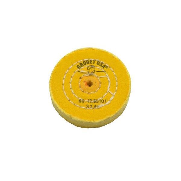 3" Diameter Chemkote Yellow Buffs with Shellac Center More aggressive, treated muslin helps remove surface scratches from work. Excellent for use with tripoli and abrasive compounds. 3" diameter. 3 rows of stitching. Available in either a 30 or 40 ply. Sold individually.