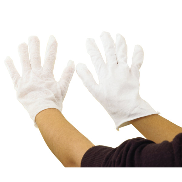Pure White Cotton Gloves Protects jewelry and silverware from fingerprints, spotting, and tarnishing. Used extensively in jewelry stores and manufacturing facilities. Sold by the dozen. Available in small heavyweight, large heavyweight, and light weight.