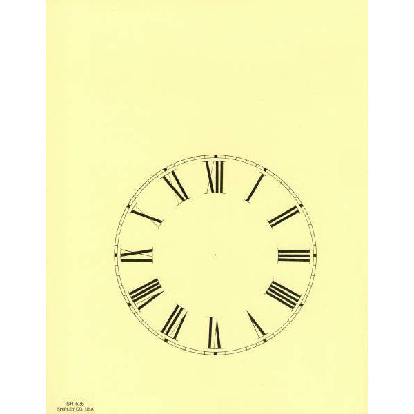 Roman Ivory 4 1/2" Steeple Dial is a paper dial that has Roman printed black numerals on a ivory background. The 4 1/2" dial is printed off set on a paper 7 1 /2" wide by 10" in height. This allows you to use these dials for a steeple clock.