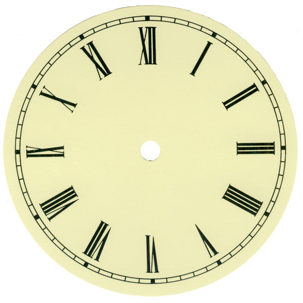 Aluminum Painted Dial Roman 6" a painted aluminum dial that has an ivory face and black roman numerals. The dial has a diameter of 152.4 mm or 6".