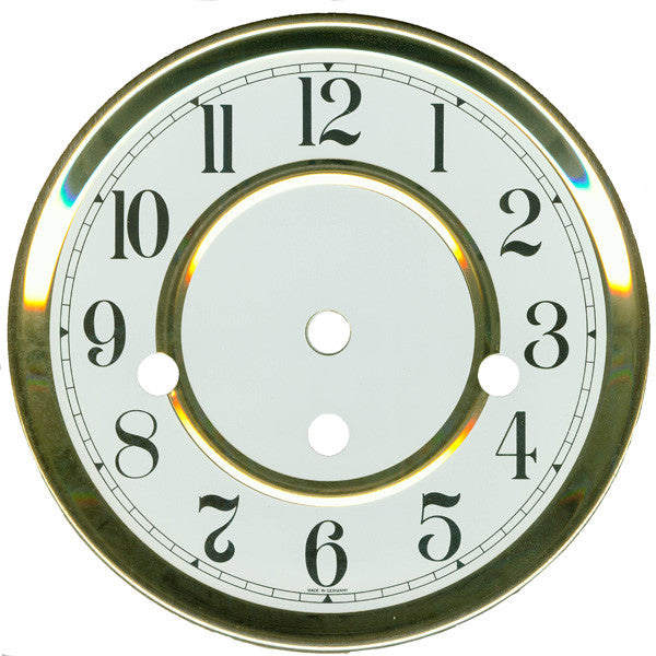 Vienna Regulator Dial Arabic FHS 341-021 is an FHS Hermle German made Vienna Regulator that is very well finished and is of excellent quality. It has a diameter of 152 mm (6"), a yellow bezel, white dial, and black Arabic numerals. The dial fits FHS movement 341-021.