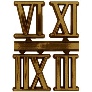 1 Inch Roman of 3-6-9-12 are 3 sets of 3, 6, 9, and 12 roman numerals. These clock figures are 1" in size and are gold in colour.