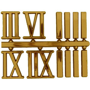 5/8" Roman of 3-6-9-12 & Dashes is a set of 3, 6, 9, and 12 with Dashes to make a total package of 12 Clock Figures. These Clock Figures are 5/8" in size and are gold in colour.