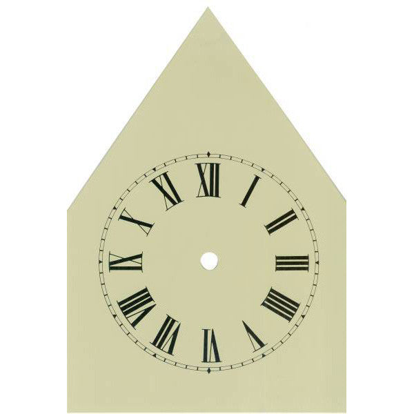 Steeple Dial 1 Day is a metal with black roman numerals and taupe colored. It measures 8" x 5 3/4" x 4 1/8".