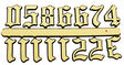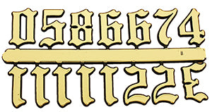 Gold Old English Figures are plastic Gold Old English clock numerals that come in a set from 1 to 12. They come in a variety of sizes including: 3/8", 5/8", 3/4" & 1". Please choose the correct size for your needs.