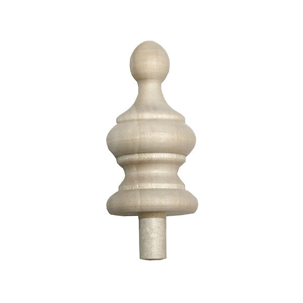 Wood Finial 1 3/4" x 2 1/2" Wood Finials 1 3/4" x 2 1/2" are ideal as a replacement for missing parts on old clock cases. Ready to be sanded and stained, varnished, or bronzed.
