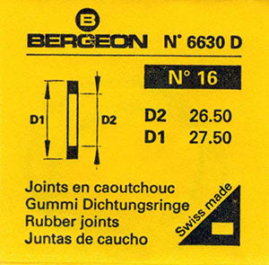 Bergeon® Swiss flat case back gasket number 6630-16, package of 2 gaskets, ID 26.50 mm OD 27.50 mm thickness 0.50