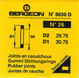 Bergeon® Swiss flat case back gasket number 6630-26, package of 2 gaskets, ID 28.75 mm OD 30.75 mm thickness 0.50
