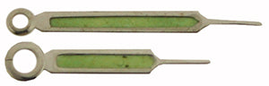 pair of hands, white luminous, index hour and minute, length of minute hand 12.00 mm, to fit Elgin® 8/0 size (hole size: 75/110 (minute/hour))