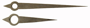 Eterna® 1428, 1438 pair of hour and minute hands, silver colour, dauphine, length of minute hand 13.00 mm, holes sizes 1.50 / 0.90 mm