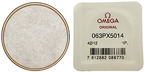 30.62 mm x 5.00 mm (height) round plastic crystal with gold colour ring, genuine 063PX5014 Omega®, to fit Omega® case REF 14766, 14900, 149005, 149006, 149062, 14919, 1650003, 165003, 1655003, 1655410, 1670005, 1670006, 167005, 167006, 1685416, 4297429760