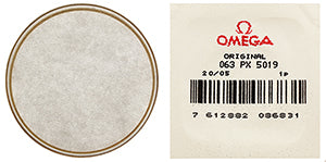 20.12 mm x 4.07 mm (height) round plastic crystal with gold colour ring, genuine 063PX5019 Omega® crystal, fits Omega® case REF 5650001, 565001, 5650003, 5650011, 5655003
