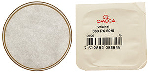 20.12 mm x 4.82 mm (height) round plastic crystal with gold colour ring, genuine 063PX5020 Omega® crystal, fits Omega® case REF 5660001, 5660003, 5660011