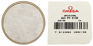 30.62 mm x 3.90 mm (height) round plastic crystal with gold colour ring, genuine 063PX5138 Omega® crystal, fits Omega® case REF 1660055, 1660056, 1660063, 1680042, 1680046, 1680048