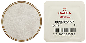 31.62 mm x 4.10 mm (height) round plastic crystal with gold colour ring, genuine 063PX5157 Omega® crystal, fits Omega® case REF 10682238, 1650067, 1660067, 1660167, 3685470