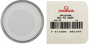 24.62 mm x 3.10 mm (height) plastic crystal with steel colour ring, genuine 063PZ5264 Omega® crystal, fits Omega® case REF 5960003, 7960805