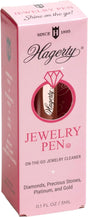 Hagerty Jewelry Pen Click, brush, and shine. Click the jewelry pen to release the forumla until the brush is saturated. Clean underneath stones, settings, and surface of jewelry for a flawless finish. Intended for diamonds, precious stones, platinum and gold.