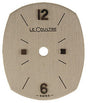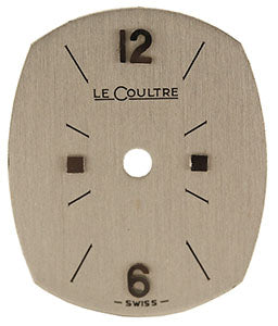 genuine vintage LeCoultre® (unknown caliber), silver tone dial with black line and gold markers, 12.65 mm x 15.20 mm. These dials may have small imperfections.