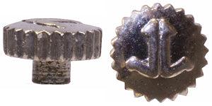 genuine, vintage, steel crown with logo, diameter 3.20 mm, total height 2.10 mm, tap 0.90 mm