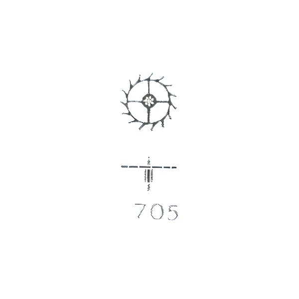 Jaeger LeCoultre® escape wheel and pinion, part # 705, calibre # 497/1