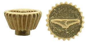 yellow, antique shape, short pipe with “wings” logo, diameter 3.15 mm, height of crown only 1.50 mm, tap 0.90 mm, total height of crown including pipe 2.15 mm