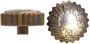 yellow, short pipe, “wings with name”, diameter 5.70 mm, height of crown only 2.00 mm, tap 1.10 mm, total height of crown including pipe 3.20 mm