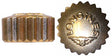 yellow, thick square, flush pipe with “wings” and name logo, diameter 5.00 mm, height of crown only 3.00 mm, total height of crown 3.00 mm, opening diameter to tube crown fits 2.00 mm, tap 0.90 mm