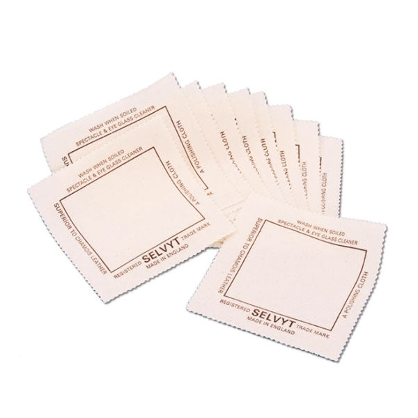Selvyt Cloths 0 High-quality polishing cloth. Soft, velvety, no-lint texture polishes surfaces without scratching. Use on jewelry, silverware, eyeglasses, records, etc. It will retain its softness and suppleness even after repeated washings. Dimensions are 5" x 5". Sold individually.