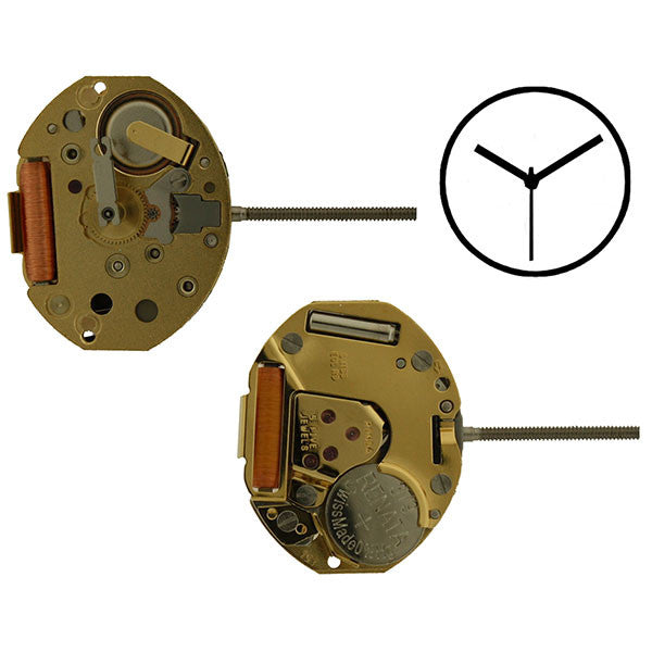 RL753-H5 Swiss RL 753-H4 Swiss Ronda Normtech Quartz Movement is a 3 hand (hour/minute/sweep second) Swiss assembled. This ladies movement is an 5 1/2 x 6 3/4 ligne movement, dimensions are 13.00 mm x 15.15 mm with a height of 2.50 mm, movement height H5. This is a 5 jewel movement, gilt plates, using a 379 battery with hand dimensions 120/70/20 (hour/minute/seconds). The best way to determine your movement height is to measure the height of the hour wheel on the movement you are replacing. Movement height H5 has an hour wheel with a height of 3.15 mm.