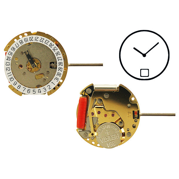 RL774 Date 6 RL 774 Date 6 Swiss Ronda Normtech Quartz Movement is a 2 hand (hour/minute) movement with a date window at the 6 o'clock position, Swiss parts. This ladies movement is a 7 3/4 ligne movement, dimensions are 17.20 mm in diameter with a height of 2.50 mm, movement height H1. This is a 5 jewel movement, yellow plates, using a 364 battery with hand dimensions 120/70 (hour/minute). The best way to determine your movement height is to measure the height of the hour wheel on the movement you are replacing. Movement height H1 has an hour wheel with a height of 1.27 mm.